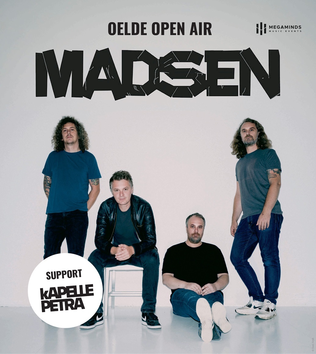 „Vielleicht ist das der Anfang / Vielleicht ist das das Ende“ – diese Zeilen aus dem ersten Song ihres Debütalbums stellten 2005 noch eine offene Frage dar. Heute, 20 Jahre später, ist die Antwort eindeutig: Es war der Anfang einer einzigartigen Erfolgsgeschichte! Mit zehn Studioalben, zahlreichen gefeierten Live-Auftritten und ihrem ersten #1-Album „Hollywood“ (2023) zählen MADSEN längst zu den Größen der deutschen Rockszene. Ihr energiegeladener Mix aus Alternative Rock, Punk und Pop begeistert seit zwei Jahrzehnten eine treue Fangemeinde – und 2025 bringen sie ihre mitreißende Live-Show nach Oelde!