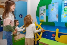 Die Lieferketten für tägliche Nahrungsmittel können Kinder als LKW-Fahrer, Schiffskapitän oder Pilot schon jetzt an einer der neuen Stationen im Kindermuseum nachverfolgen.